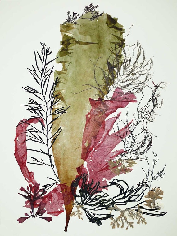 Sugar Kelp Pressing Pressed Seaweeds Sea Weed Art Natural Kelp Seaweed Art Beach Cottage Decor Alganet Original Algae Collage 22x29