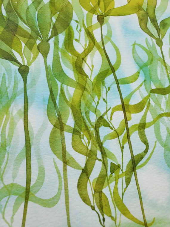 Kelp Forest Watercolor Art Print Ocean Sea Marine Seaweed